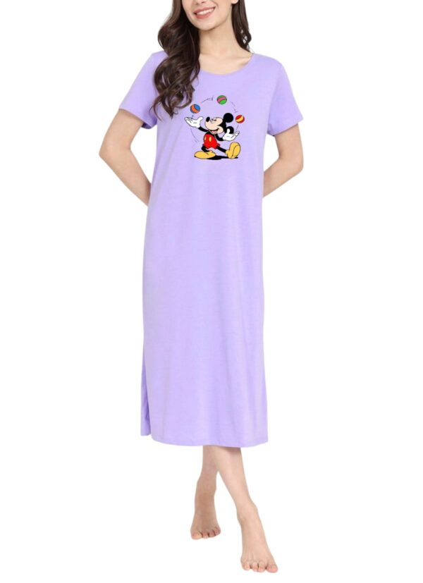 Name : Premium Womens Nightdress, Mid-Calf Length, 100% Cotton, Lavender